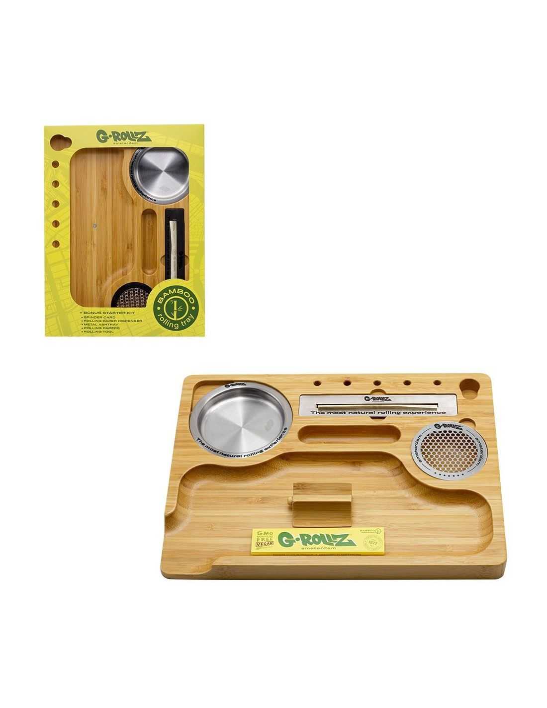 La bandeja G-Rollz está fabricada al 100% con bambú de alta calidad, lo que la hace ligera y fácil de llevar. Pero que eso no te engañe, el bambú también es muy resistente, lo que hace que la bandeja sea muy duradera.