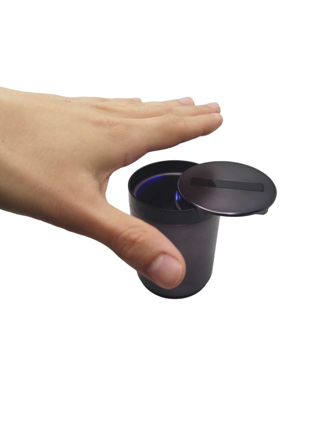 CENICERO PARA COCHE CON CIERRE AUTOMATICO POR INFRARROJO, PARA ABRIR O CERRAR LA TAPA SOLO HAY QUE ACERCAR LA MANO AL SENSOR, SE CARGA POR USB INCLUYE CABLE.