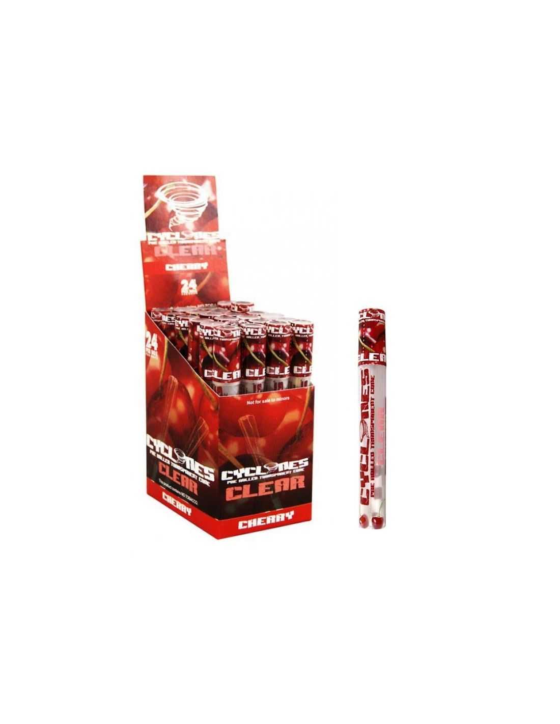 Los Cyclones Clear Cherry son conos pre-enrollados fabricados en papel de celulosa transparente natural impregnados de sabor, en este caso a cereza, listos para rellenar y fumar. Los puedes comprar sueltos o por caja de 24 Cyclones.