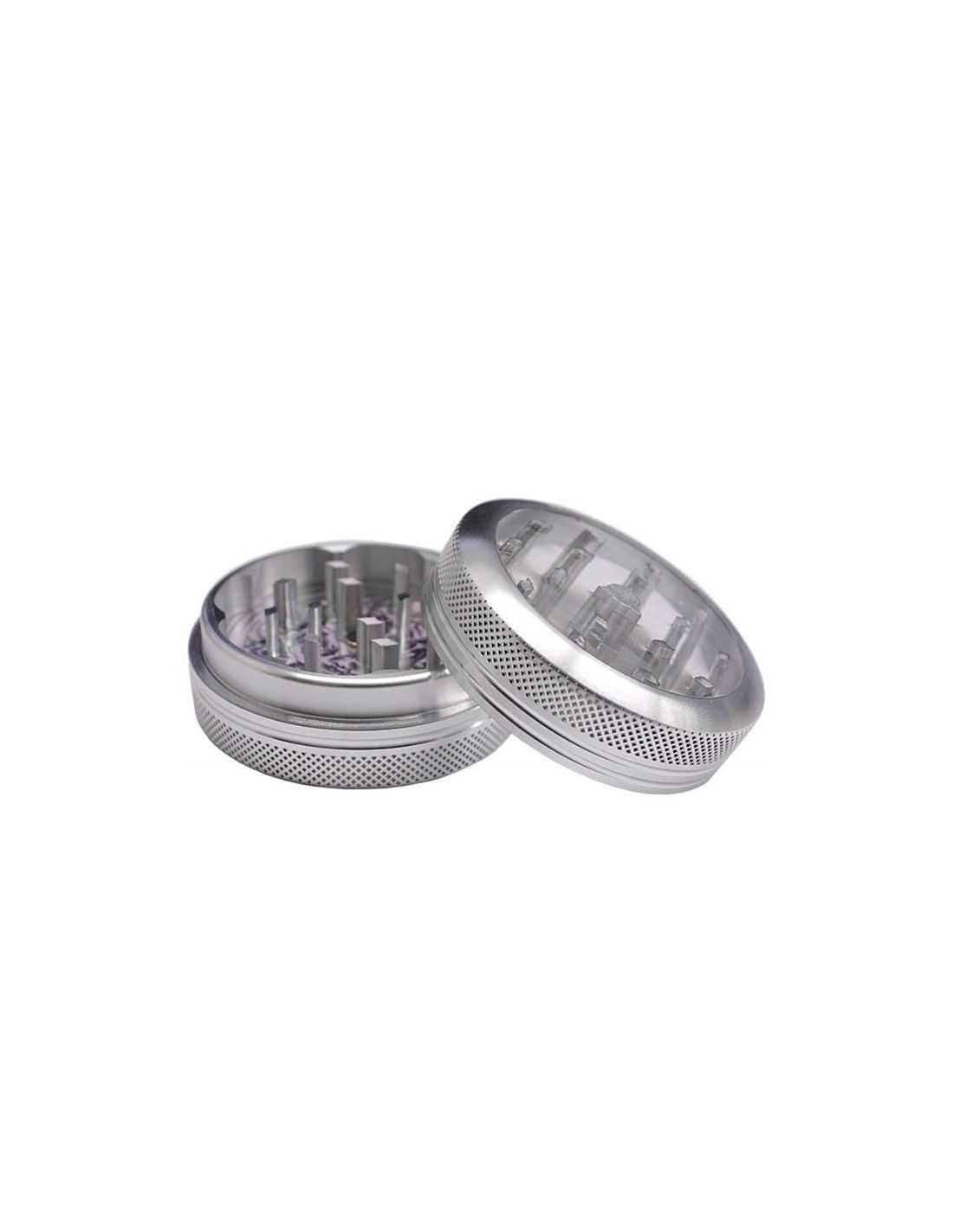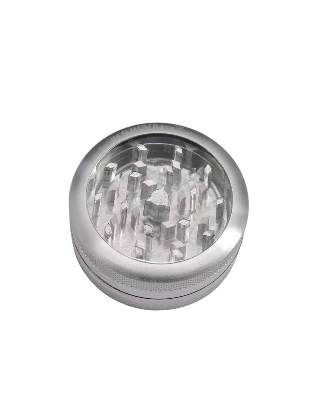 Grinder de aluminio Hammercraft de 60mm, con cierre magnético y tapa superior transparente para que puedas ver el picado y así dejar a tu gusto.