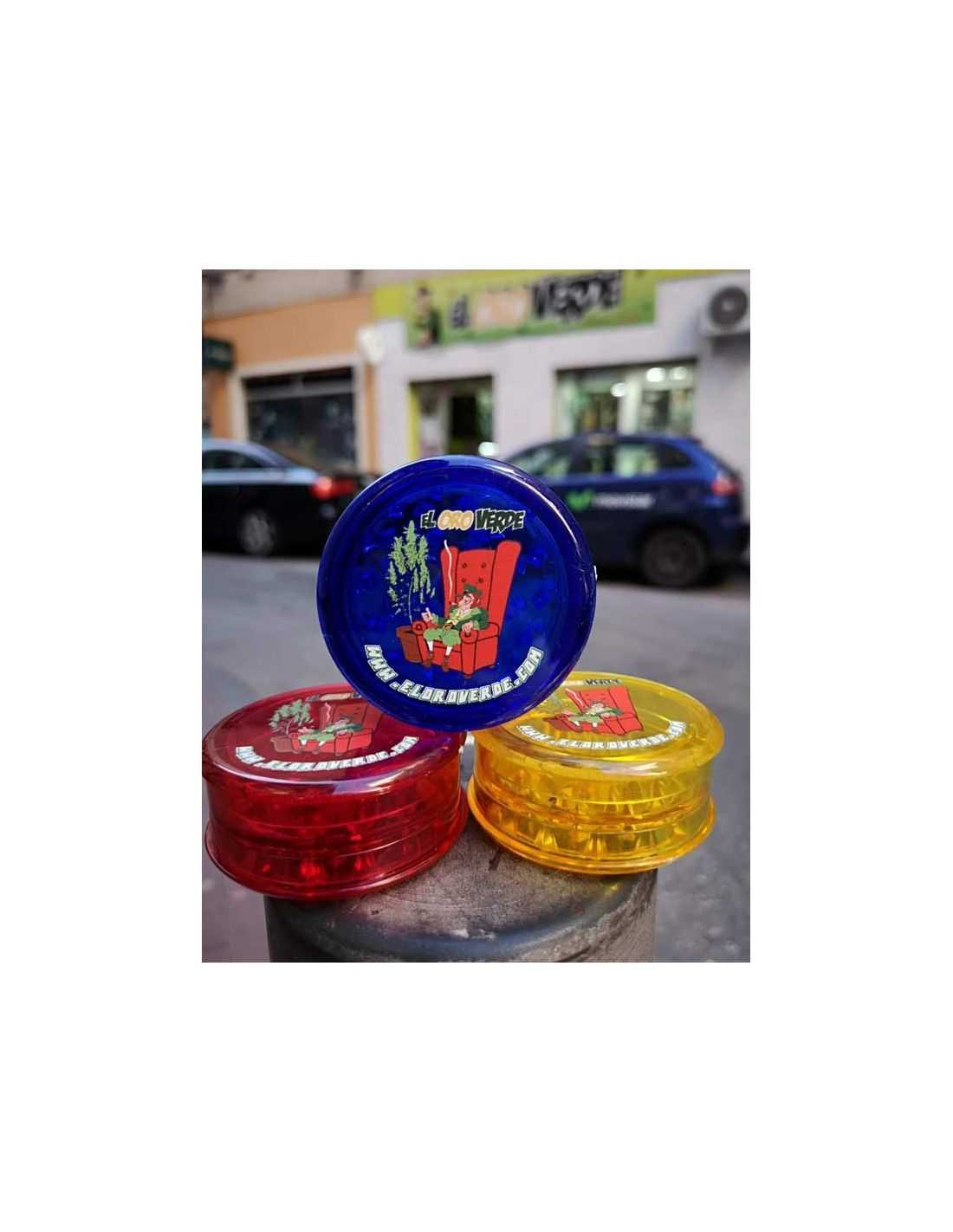 Nuevos grinder de merchandising el Oro Verde, grabados con láser en 5 colores, con púas en forma de pincho y dos depósitos para guardar papel u otros artículos. Elige ya el tuyo o los tuyos. El precio es por unidad.
