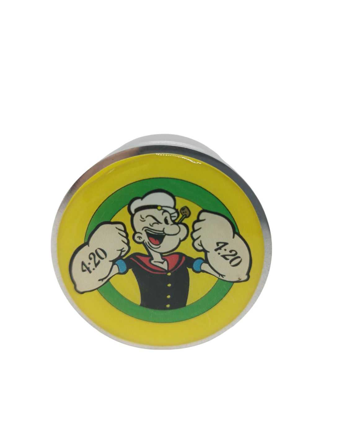Grinder colección POPEYE de 50 mm. Fabricado en aluminio, con cierre magnético, 4 partes con malla, depósito para recoger el polen.