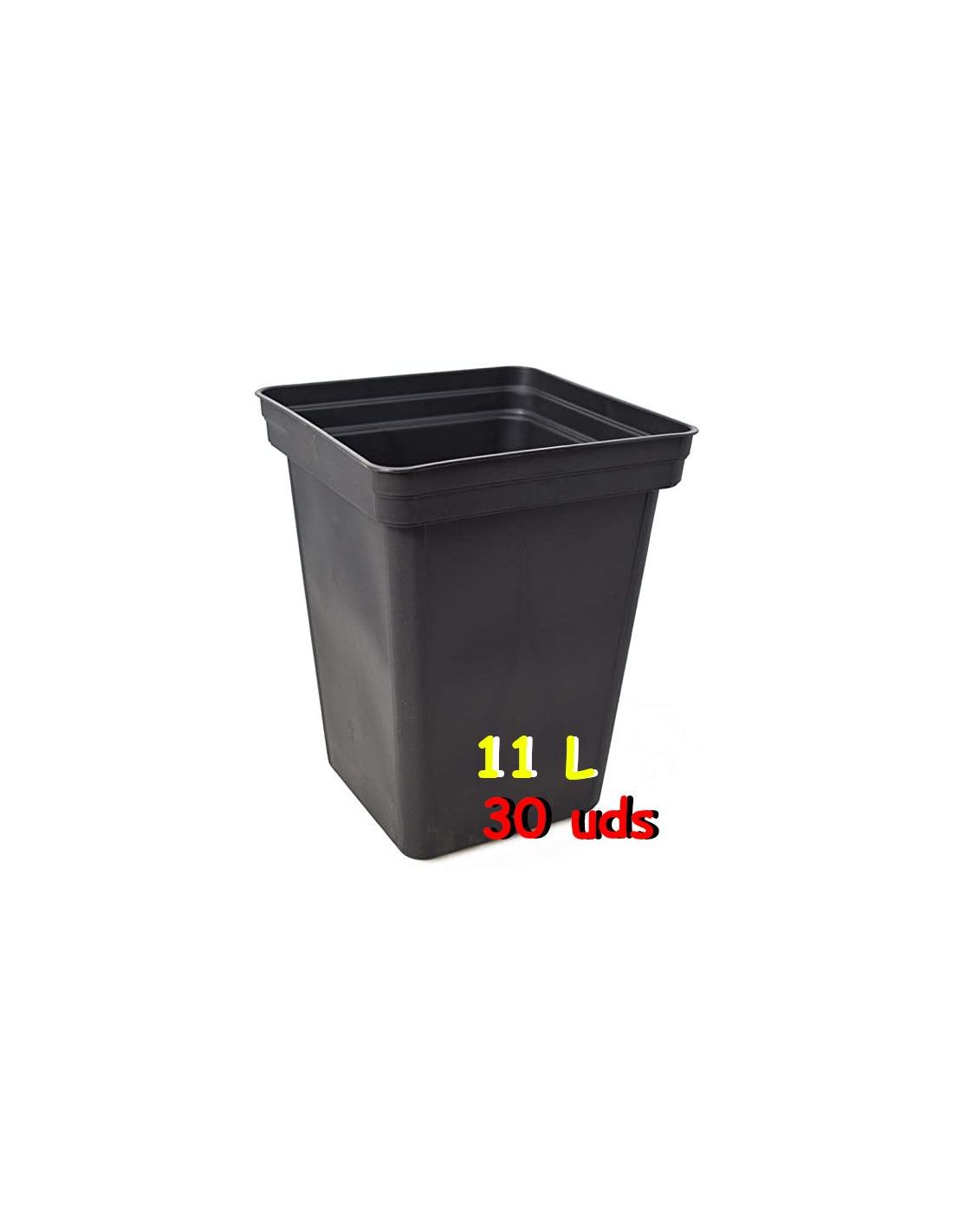 - Pack de maceteros cuadrados 11L para cultivo, contiene 30 unidades.