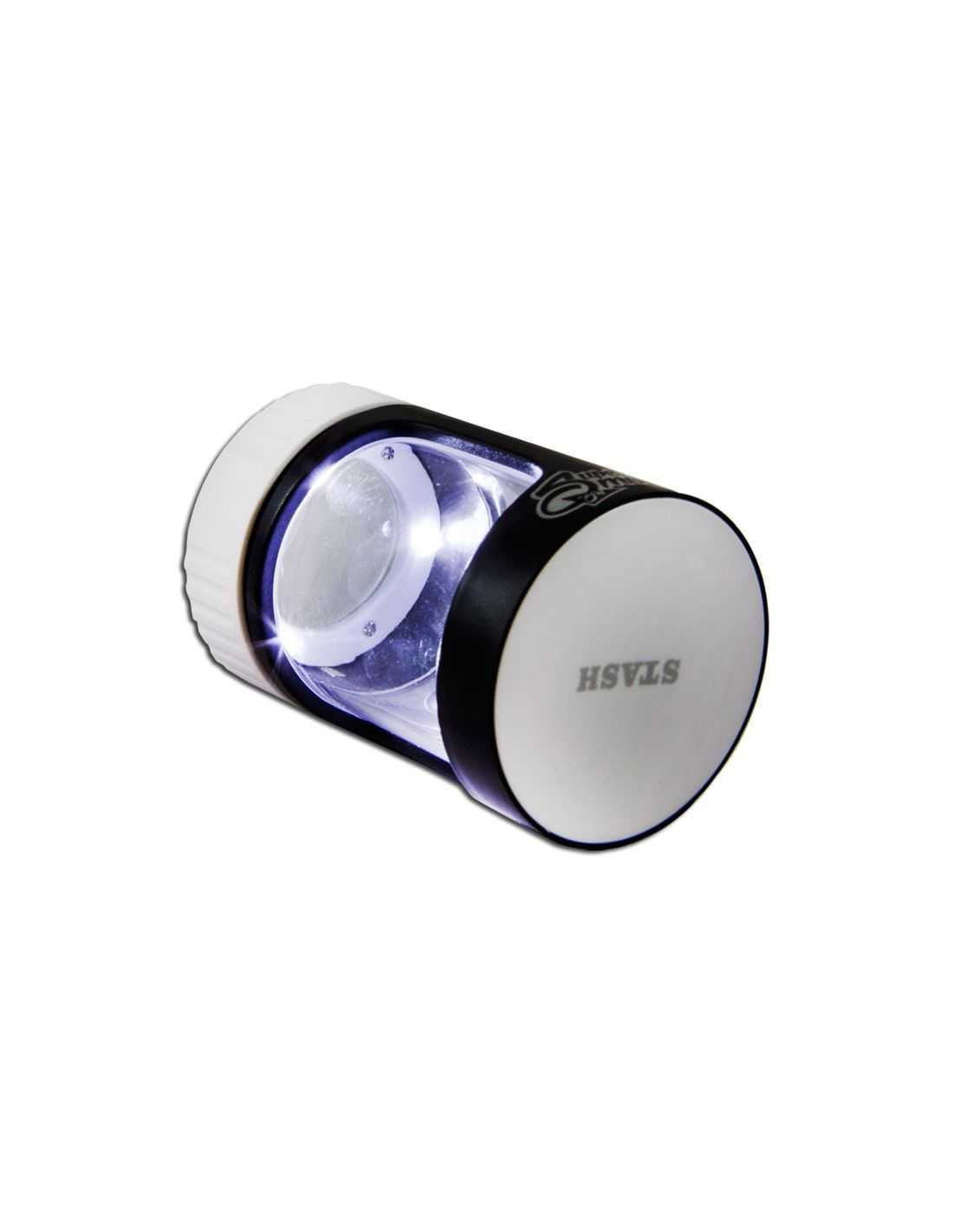 En la tapa superior incluye una lupa ideal para la observación de los tricomas y a la vez con un ligero giro se ilumina su interior con un sistema de luces leds de bajo consumo que desprende cero calor para no dañar los mismos y que te permitirá ver hasta el último detalle.