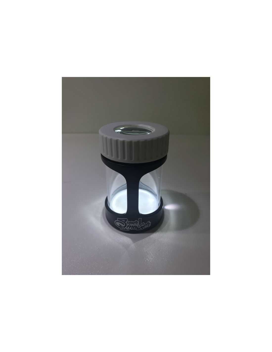 Nuevo y revolucionario artículo fruto de la colaboración de Super Smoker con la empresa Norte Americana Smokus Focus, para presentar este bote al vacío, iluminado y con lupa para conservar tus cogollos y a la vez observar la evolución de los tricomas con la mejor calidad.