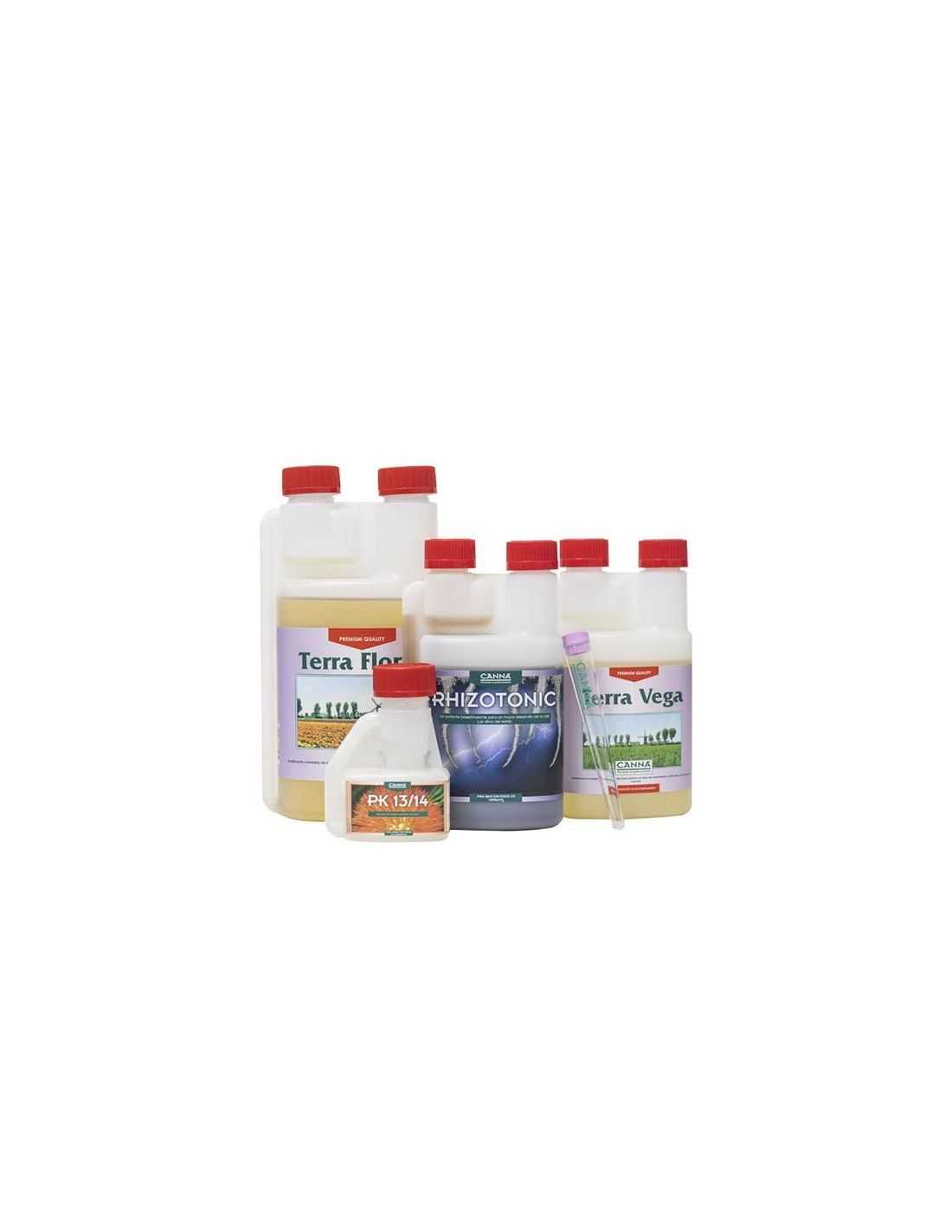 Canna Terra contiene un kit de productos diseñados específicamente para cultivar en tierra, tanto en suelo directamente como en maceta.
