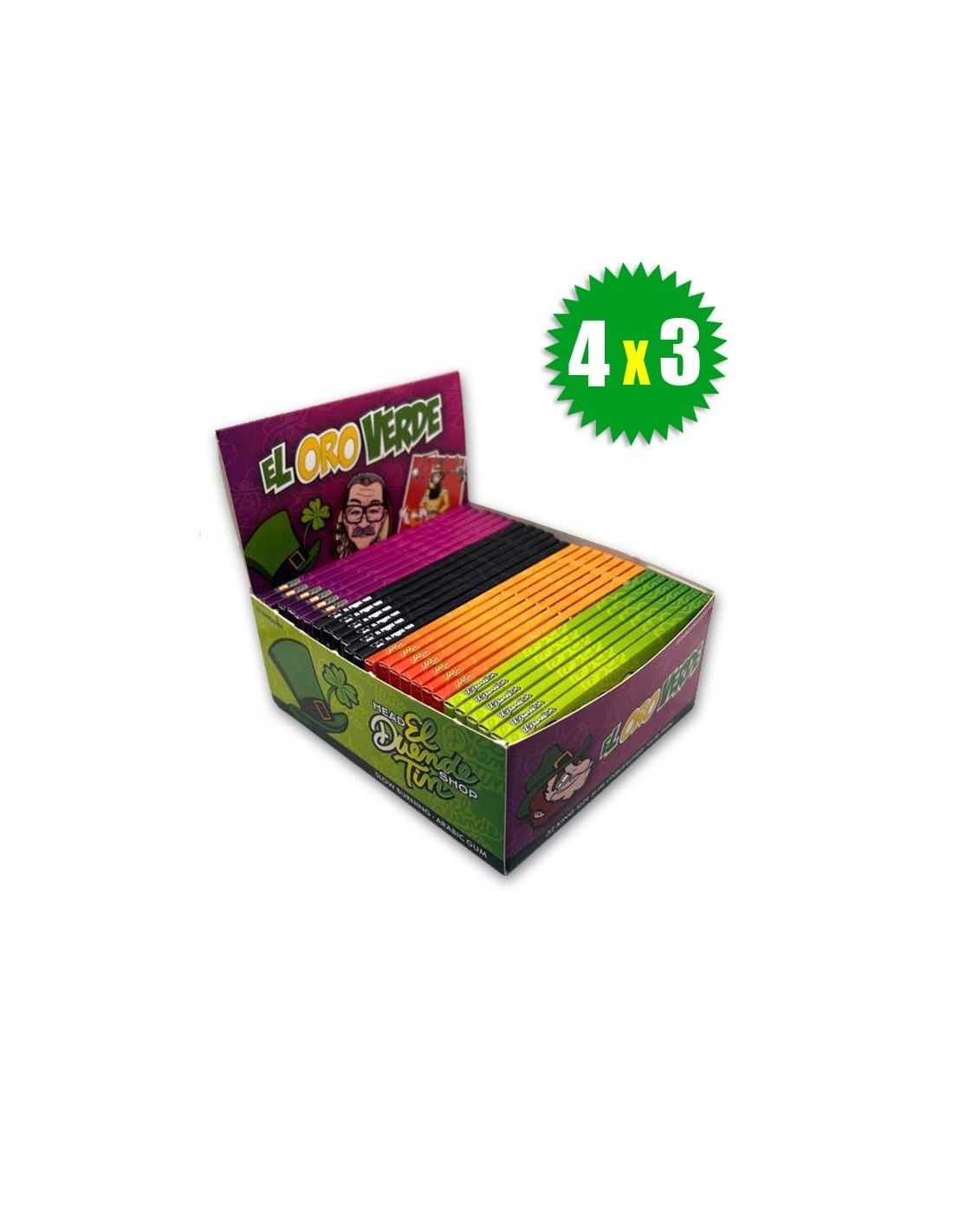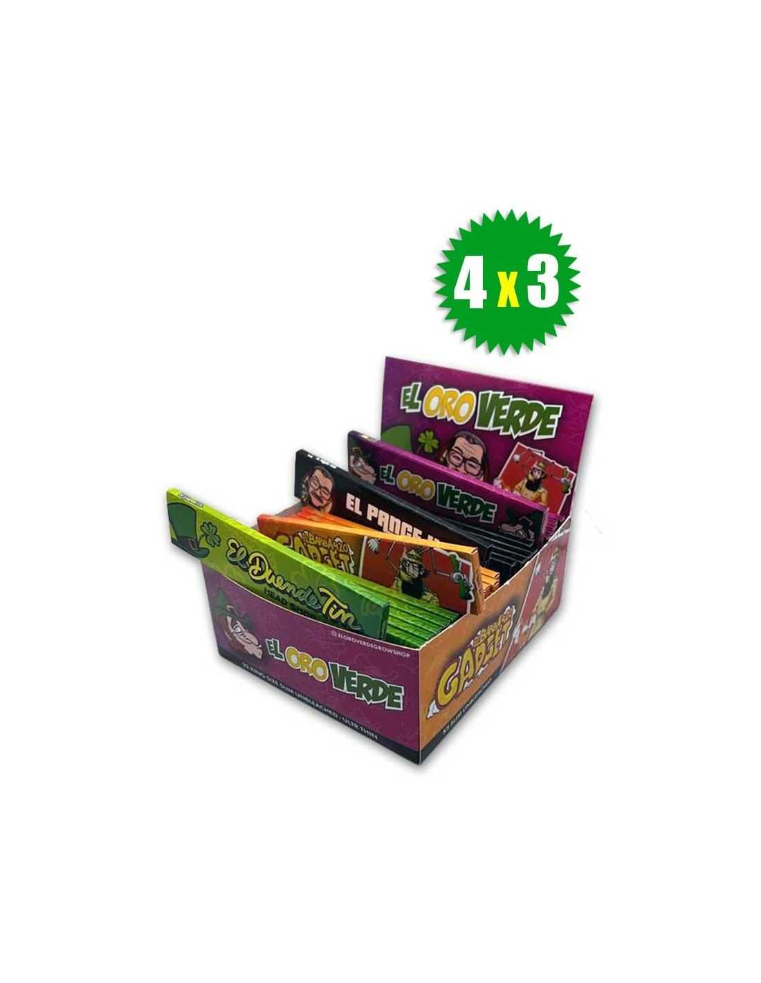 Caja surtida de librillos de papel el Oro Verde (Oro Verde, el Duende Tin, el Pance 420 y el Barba 420). Precio especial asociaciones, compra 3 cajas y te llevas 4.