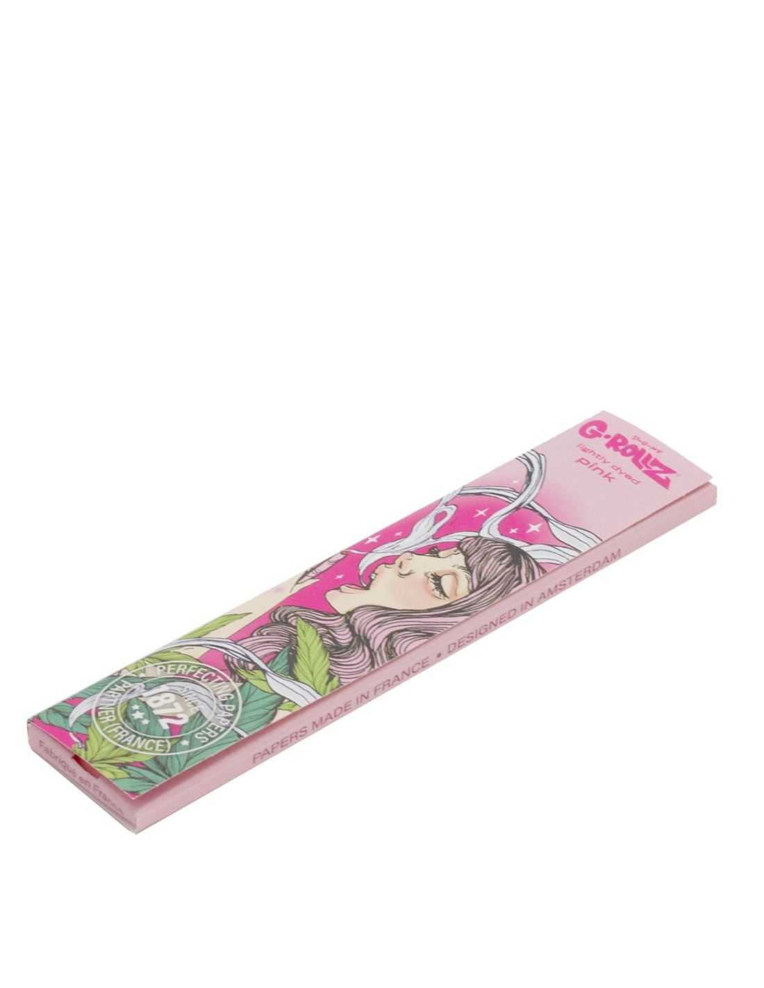 Papel de liar rosa G-Rollz king size slim. Fabricado con fibras vegetales y savia de acacia para la pega 100% natural y vegano.