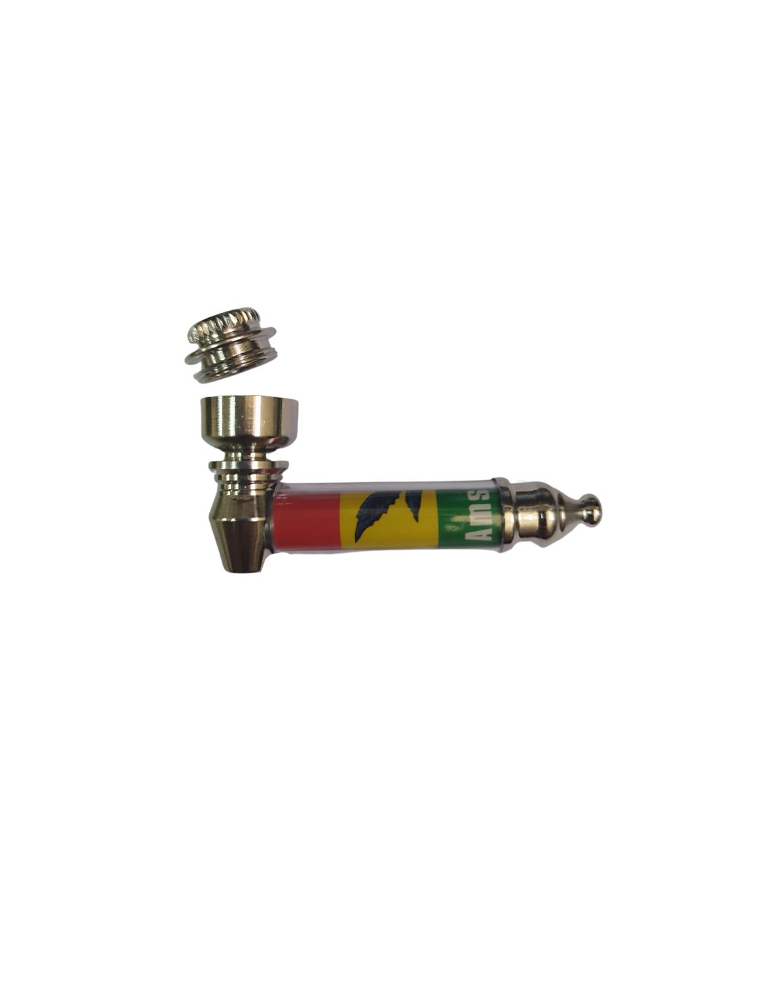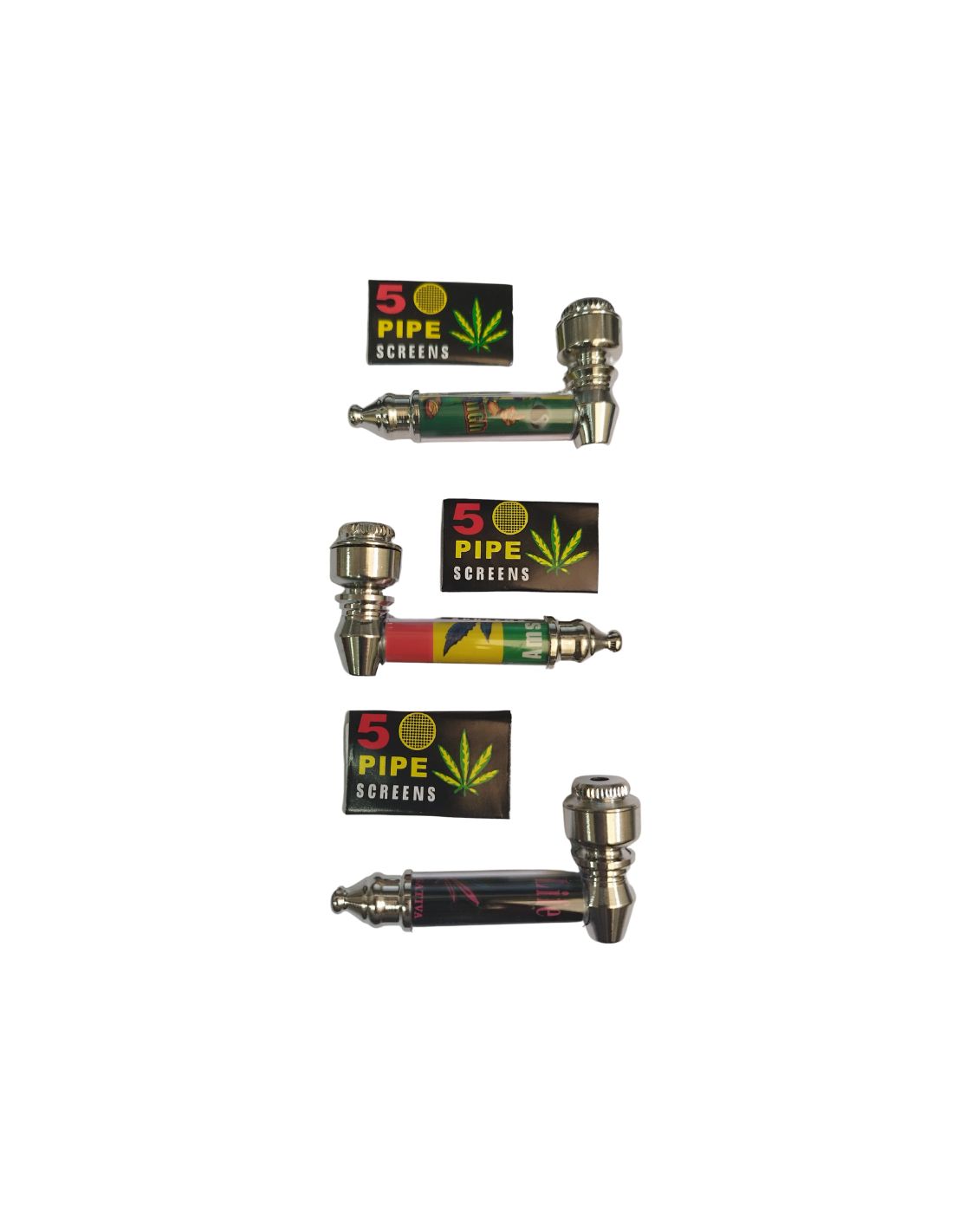Pipa de metal con tapa de rosca para el Bowl, 6,5 CM , incluye 5 repuestos de rejillas, diseño rasta aleatorio.