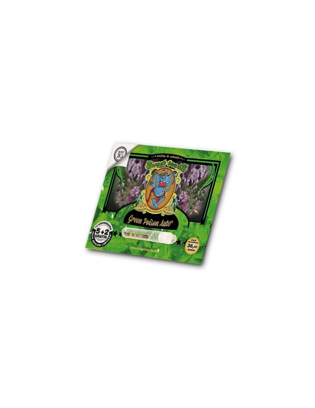 Green Poison auto es una autofloreciente de 3ª generación de alta producción de flores y resina con efecto potente y duradero.