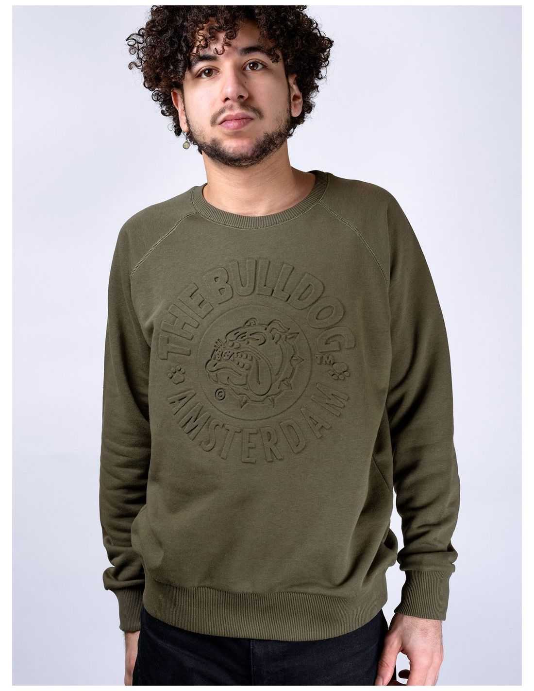 Sudadera The Bulldog Crewneck Emnosed Army con relieve en color verde militar. 100% algodón con el logo original The Bulldog Amsterdam. Disponible en talla S,M,L y XL.